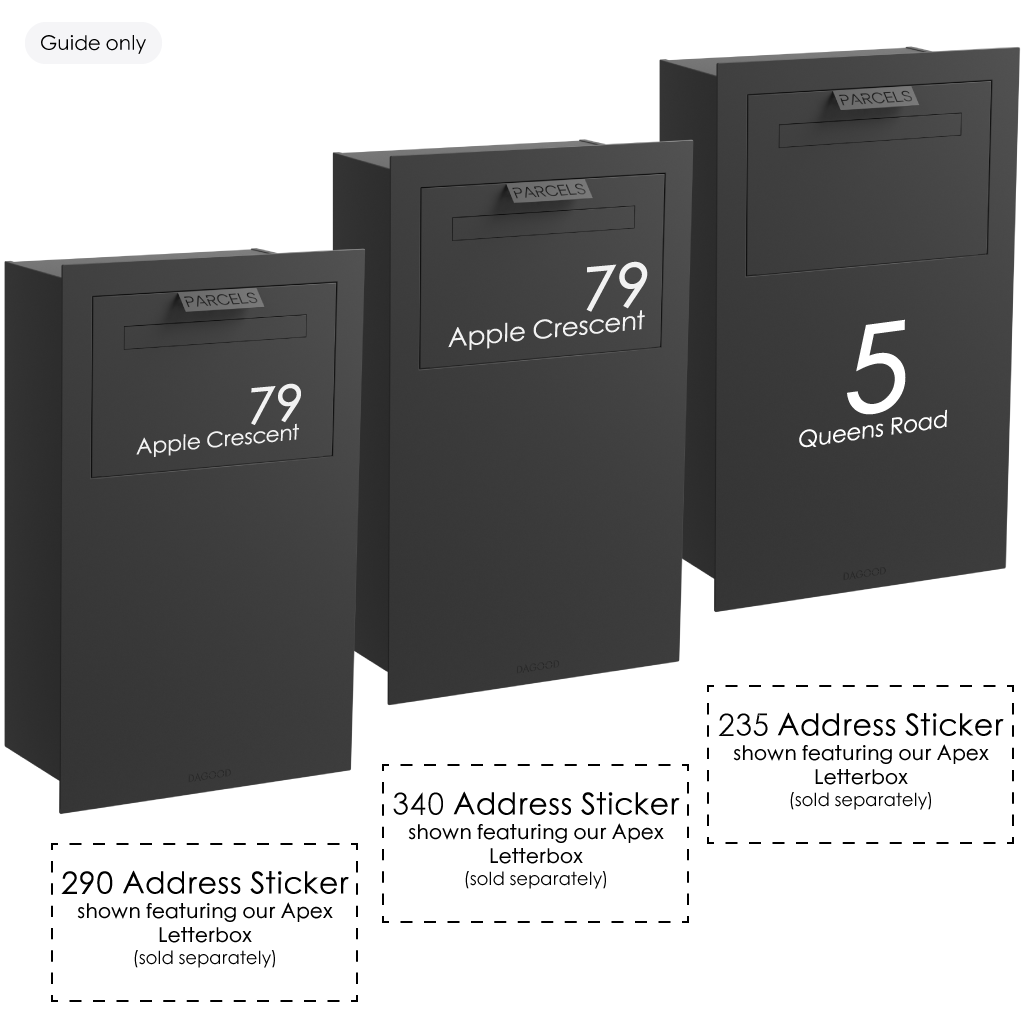 Every Dagood letterbox has different front panel sizes. Choosing the right address decal, custom sign, or house numbers helps your letterbox look balanced and easy to read.
